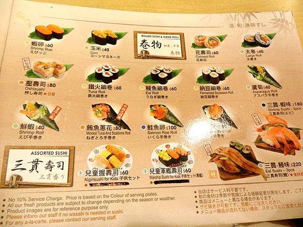 中與志是不收服務費的,加外帶的兩份壽司總共剛好$1000