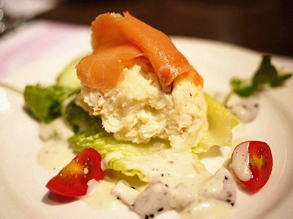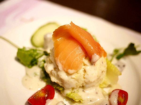 只是套餐沙拉上面就有一大片燻鮭魚,未免也太有誠意!