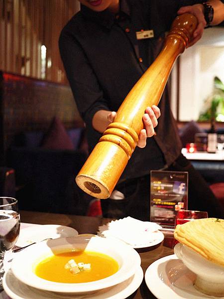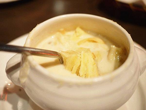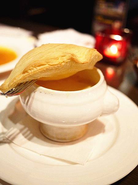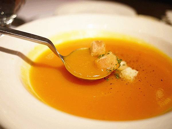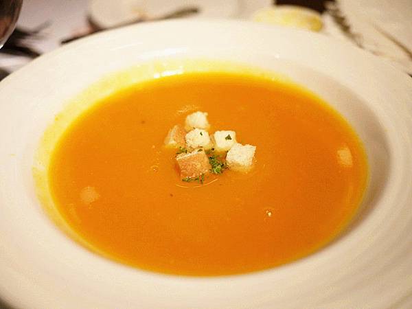 問了一下原來是裡面有加了一種乳酪讓南瓜湯喝起來有點酸