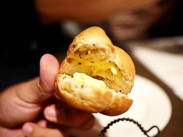 剛烤好的小餐包熱呼呼的,隨即放入奶油便溶化