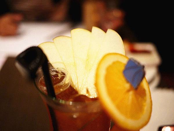 水果茶喝起來比較甜了點,等冰塊溶化的甜度比較剛好