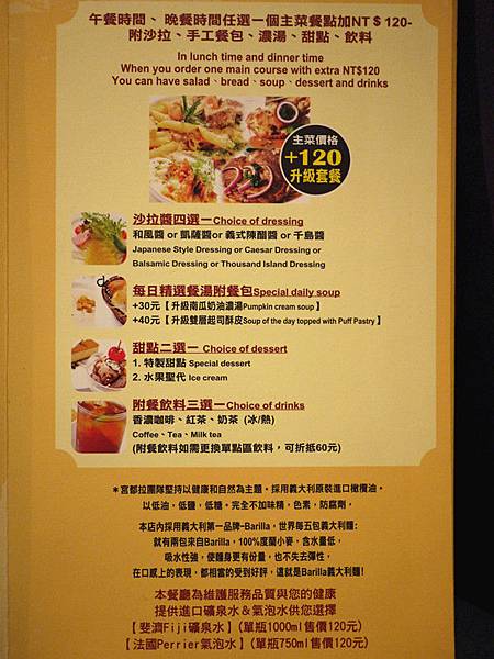 點主菜只要+$120就有沙拉 餐包 濃湯 甜點 飲料,看起來份量很夠!