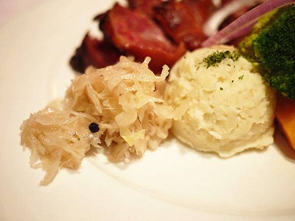 吃豬腳當然不能少的酸菜,一旁還有薯泥